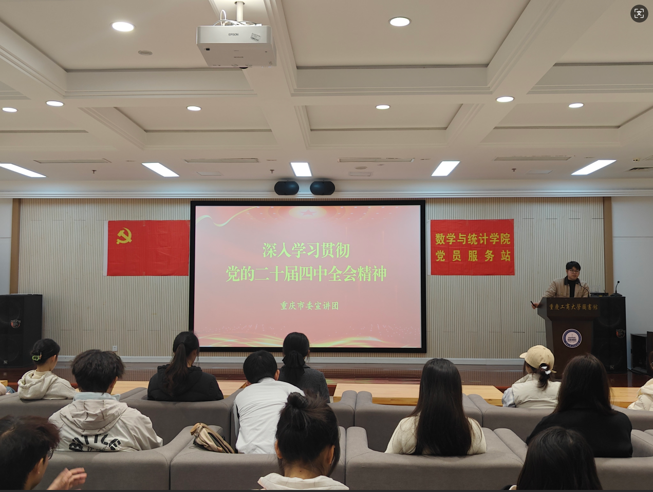 为深入学习贯彻党的二十届四中全会精神,11月28日,数学与统计学院学生第二党支部书记刘鎏面向支部全体党员及入党积极分子,作了一场主题鲜明、内涵深刻的专题宣讲。